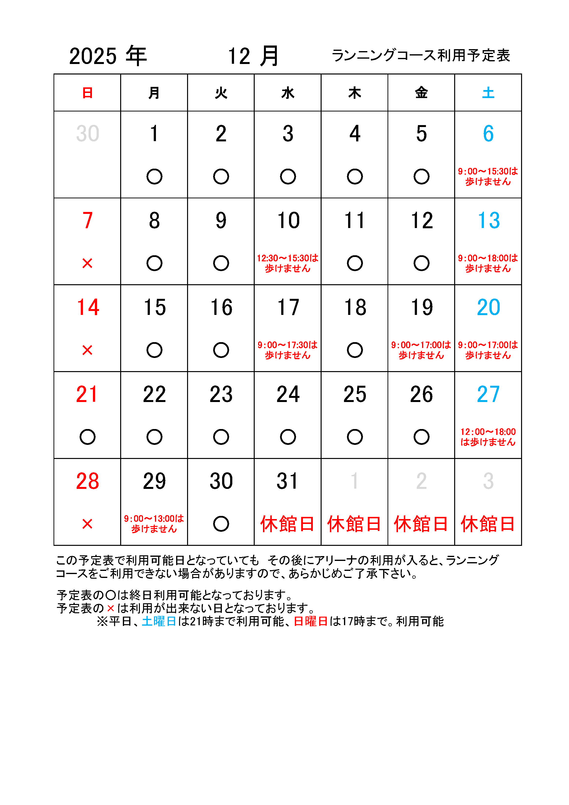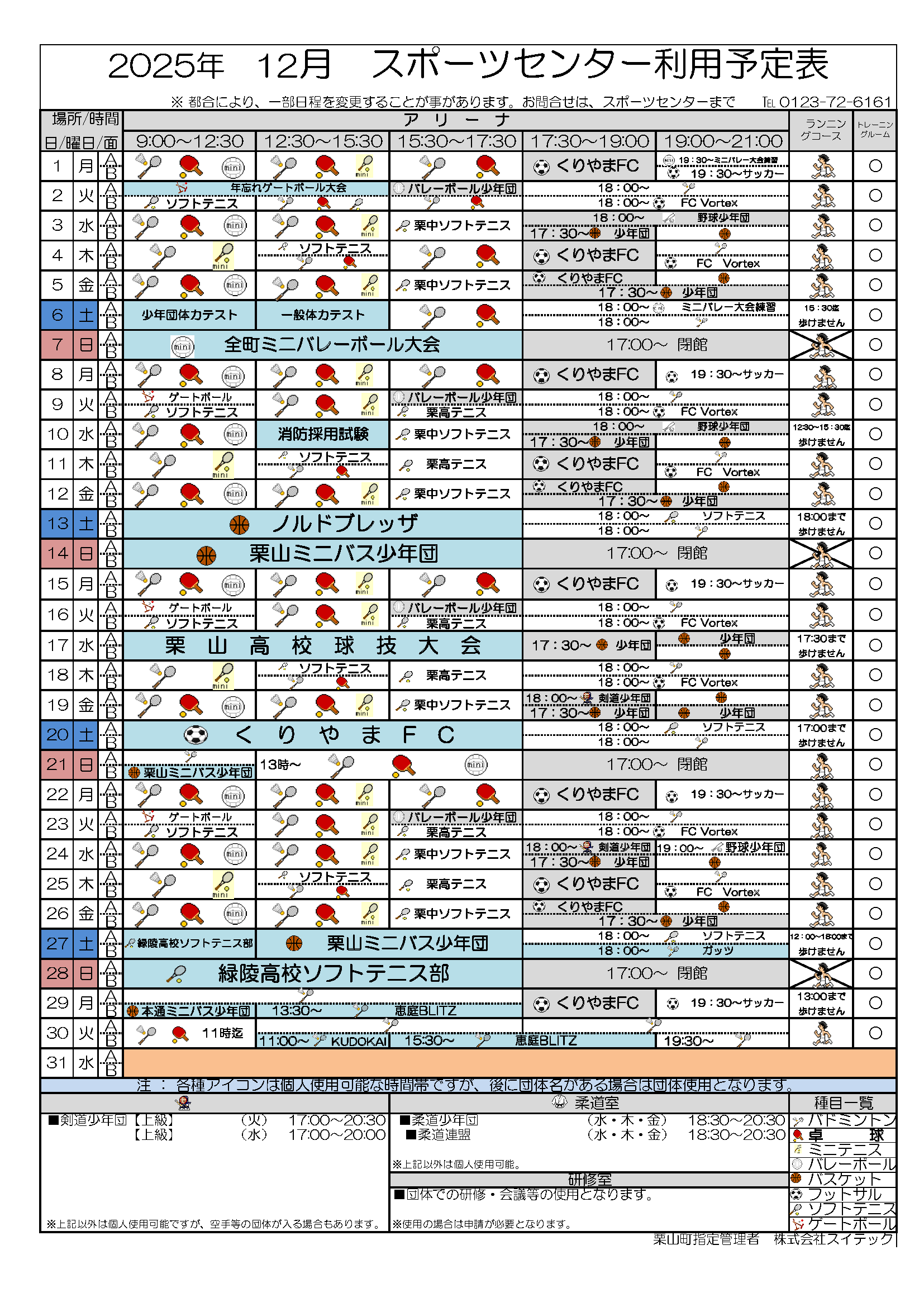※ キャッシュクリアをしていない場合、古い予定表が表示される事があります。